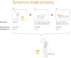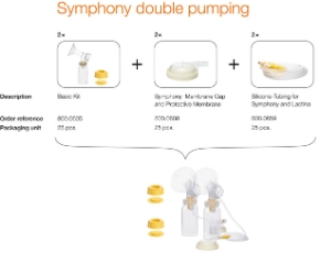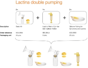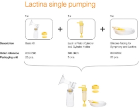 Багаторазовий набір для зціджування легко збирається і прекрасно підходить для використання в лікувальних установах. Набір включає в себе воронку, головку клапана з мембраною та багаторазовий контейнер ємністю 150 мл (з кришкою) для грудного молока. Набір використовується разом з молокоотсос Symphony і Lactina.