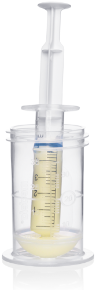 Унікальний контейнер для молозива розроблений з урахуванням думок фахівців у галузі охорони здоров`я та потреб мам. Увігнуте дно мінімізує втрати молозива і грудного молока в процесі набирання у шприц. Невеликий розмір контейнера — 35 мл — мотивує мам, формуючи адекватні очікування щодо первинного виділення молока.